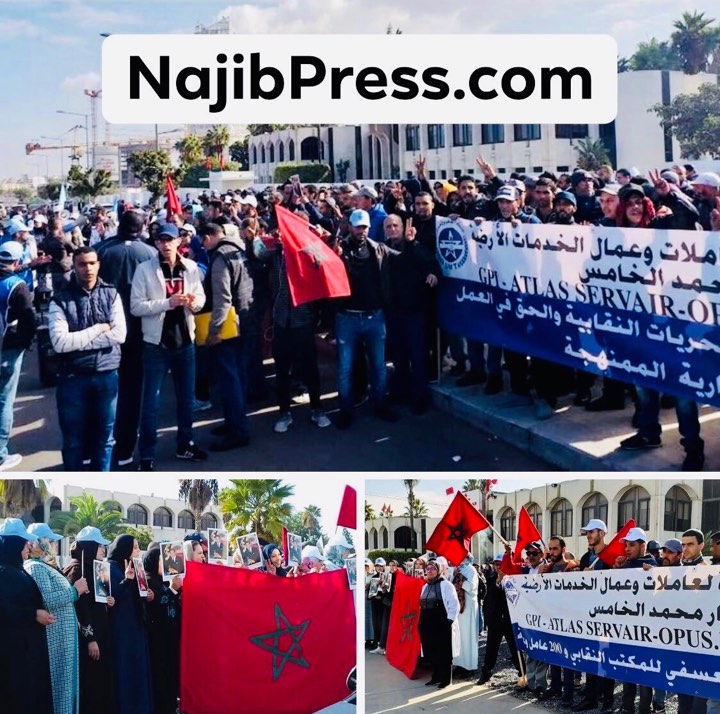 ذ و العمال، و الحكم على المطرودين منهم بالتشريد و الحرمان من القوت اليومي و ذلك في خرق سافر و تعالي على كل القوانين الوطنية و المواثيق الدولية، التي تضمن حق العمال في التنظيم النقابي و حقهم في المفاوضة الجماعية، مؤكدا أن "الأسباب الوجيهة و الحقيقية وراء الاحتقان الذي شهده و يشهده حتى الأن مطار محمد الخامس بالدار البيضاء، لا دخل للعمال فيها حيث أن مطالبهم المشروعة تتلخص في احترام كرامتهم، و احترام الإدارات المعنية لالتزاماتها خاصة بنود الميثاق الاجتماعي الموقع بمعية السلطات العمومية.