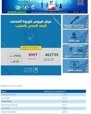يذكر أن العدد الإجمالي الذي وصل إليه المغرب لحد الآن من الإصابات المؤكدة هو 8997 حالة مؤكدة بفيروس كورونا و 213 حالة وفاة، ثم 7993 حالة تماثلت للشفاء.