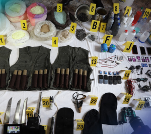 ووفق المصدر ذاته فقد أسفرت إجراءات التفتيش وعمليات المسح والتمشيط، التي أجريت في محلات وشقق كان يستغلها المشتبه فيهم كأماكن آمنة وكقاعدة خلفية للدعم اللوجستيكي، عن حجز ثلاثة أحزمة ناسفة، تحتوي على مجوفات لولبية لتحميل الأجسام المتفجرة، و15 قنينة تحتوي على مواد ومشتملات كيميائية مشبوهة، وصاعقين كهربائيين، ومعدات إلكترونية، ومساحيق كيميائية وأسلاك كهربائية.